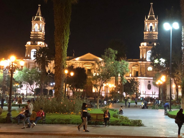 Gestern Abend angekommen, vom Flughafen aus geht es hinunter in die Stadt und wieder hinauf auf die Plaza voller Menschen. Er ist schön der Platz, umgeben von doppelstöckigen Arkaden und beherrscht von einer Basilika, die die gesamte Breite einnimmt, mit ihren beiden Türmen filigran wirkt und Dauerblitzgewitter aushält. Der Platz ist rammelvoll mit Touristen, Schlepper mit schlechtem Englisch nötigen zu Lokalbesuchen, Verkäufer nachgemachter Silberketten halten einem ihre Produkte vor die Nase und ältere Herren mit Safari Westen und Fotoapparaten vor dem Bauch ersetzen die früher so beliebten Kastenkameras mit Tuch, hinter der der Fotograf verschwand und wie mit Zauberhand ein verschwommenes Bildchen schuf. Fällt mir gerade ein: wo sind die Schuhputzer? Lohnt es nicht mehr bei den Tennis tragenden Touristen?
