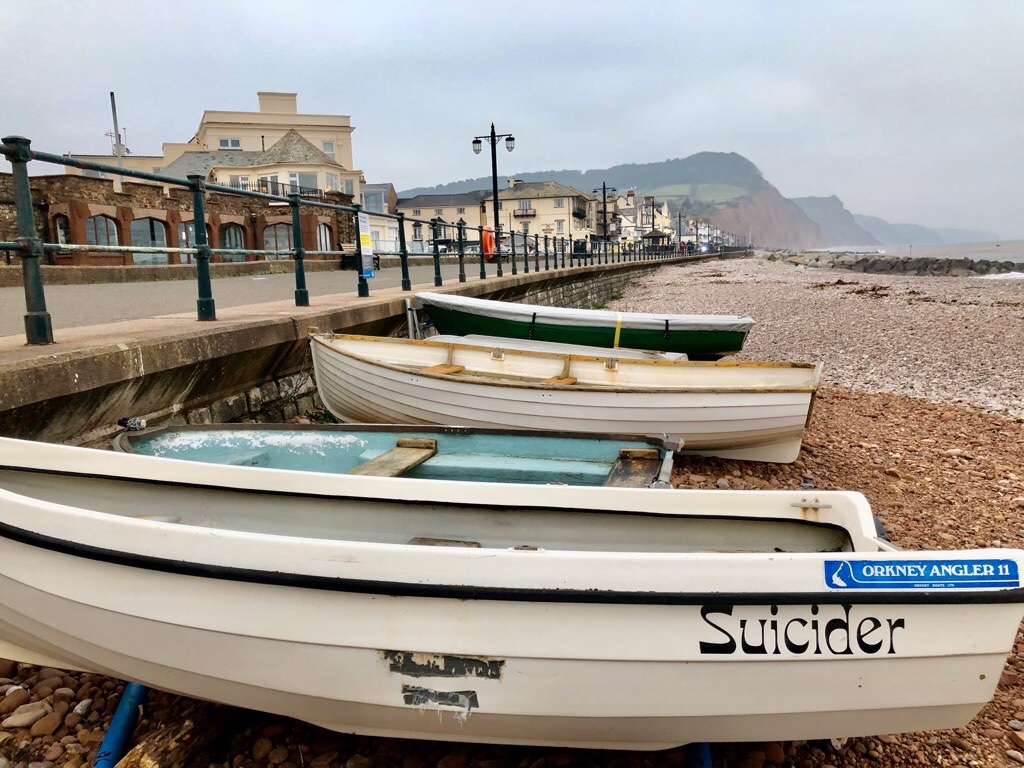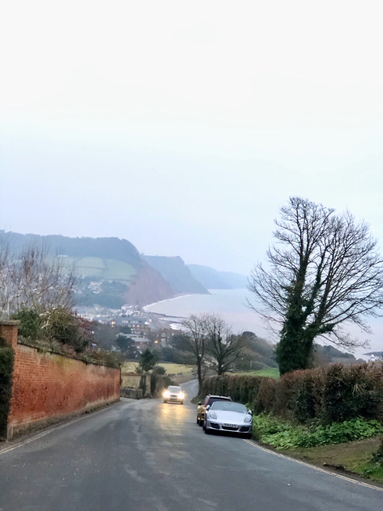 Gerade am Strand lang, den Berg hoch und auf der Flanke runter in die Stadt. Die kleinen, Reed gedeckten Cottages faszinieren mich. Es ist die Gegend der reichen Leute. Und in der Stadt, scheint mir, ist’s dasselbe. Nette Häuschen die einladen.
