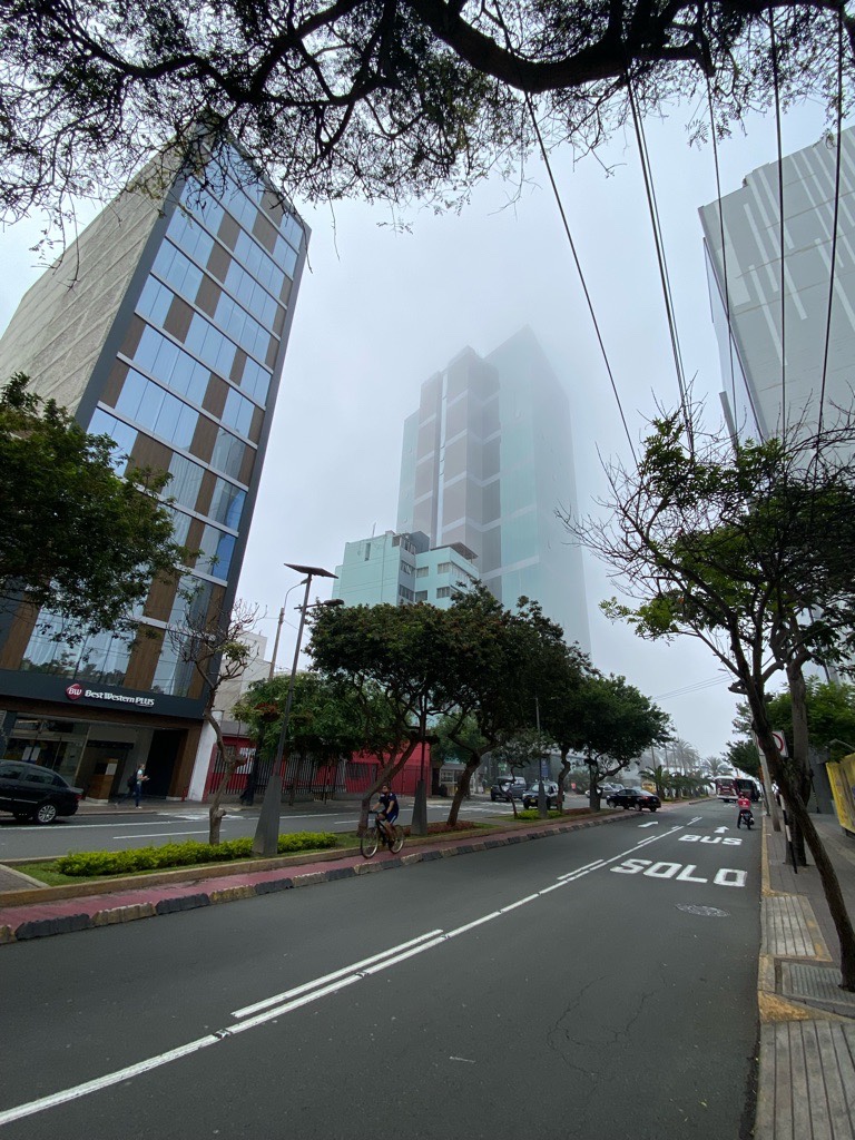 Nicht nur im Winter passiert das, heute war es auch so. Dann wabert der Nebel zwischen die Hochhäuser, legt sich wie eine Decke über die Stadt und sorgt für eine bedrückende Stimmung und kaltes Wetter. Dann ziehen die “limeños” Kleider übereinander und wir machen es gerne nach. 21 Grad ist kein Sommer!