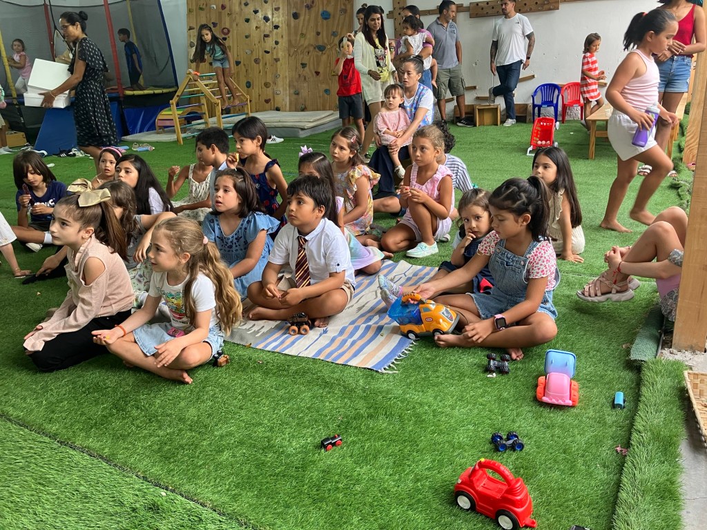 Frank brachte mich hin, stellte mich einer Dame vor „Mi mamita“ und weg war er. Ein weitläufiges Grundstück mitten in Barranco mit einem überdachten Teil, das mit Kletterwand, Trampolin, Klettergerüst und Plastikrasen sowie zahlreichen Tischchen mit Süßigkeiten ausgestattet war. Mindestens 100 Personen, die Mehrzahl Erwachsene waren schon da, lutschten Eis, tranken Saft und unterhielten sich. Die größeren Jungen spielten Fußball, die anderen hüpften, kletterten oder belästigten ihre Eltern.