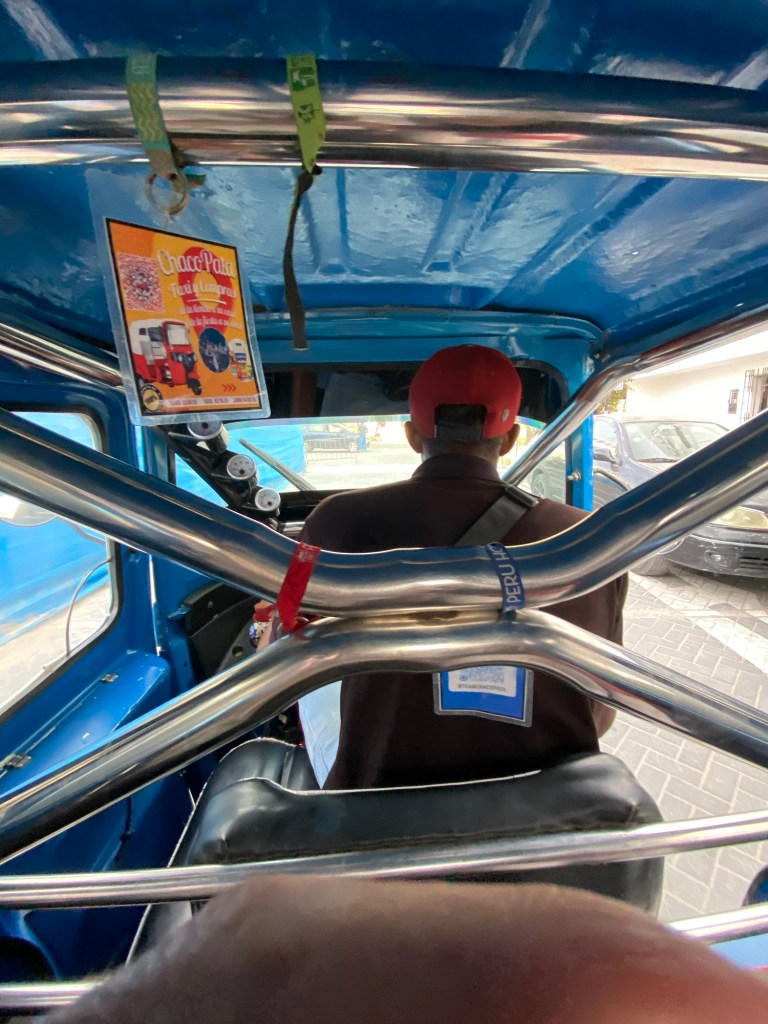 Wir können immer am Strand entlang in 15 Minuten im Ort sein. Gestern wollte ich eine Schneiderin suchen, die mir meine schöne weite Hose zwei Zentimeter umnäht, da ich mir immer drauftrete. Nach kurzer Suche fanden wir einen tollen blauen Bikini für mich und eine Polizistin, die eine Schneiderin kannte und einen jungen Mann anrief, der uns mit einem Mototaxi hinbrachte. Es ging hin und her, rauf und runter mit dem wackligen Gefährt und nur ein Einheimischer aus dem Barrio kam mit dem Straßengewirr zurecht.