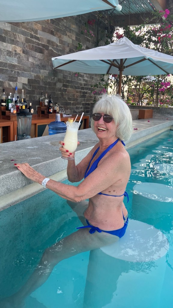 Bar am Pool mit meiner Geliebten80 Jahre und viel dazu gelerntExtra schön für michGeburtstagstorte vom Hotel Hilfe bei der Torte ist nicht fernWas mag da drin sein?M ist frohLebemannLebemann mit Bardamen