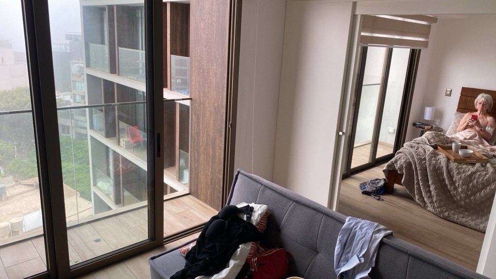 Beide hatten wir starken Husten, eigentlich wie immer am Anfang unseres Aufenthaltes in Lima. Kommt vom vielen Nebel. Bei mir war der Kopf zu, Marianne hatte eine akute Bronchitis. Uns beiden geht es mit dem Husten viel besser. Fast weg. Unschön, dass mich temporär Depressionsschübe plagen. Die netten Leute um mich helfen dabei sehr. Und die Kinder lieben es, den Opi fertig zu machen. Auch die Omi muss ab und an ran und unters Bett oder mit Sophie Wettrennen um den Park machen. Wir sind halt ältere, kinderliebende Dussel.