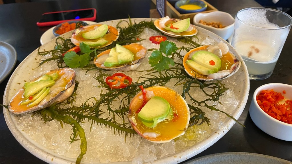 Köstlich! Wirklich. Leider war eine schlecht und mir dann auch. Gegen Durchfall empfehle ich literweise Tee und Wasser, Bananen in Massen. Und eine yerba buena aus den Hochanden, wahrscheinlich noch von den Inkas. Carolas Mutter hat das Kraut mitgebracht und bei ihren Kindern angewendet.