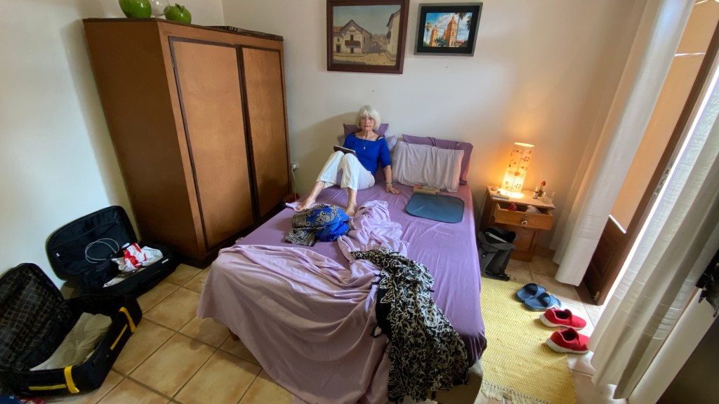 Karen ist um halb sechs zum Tanken gefahren und kam gerade zurück – ohne Benzin. Die beiden haben „unser“ Zimmer verändert, wir haben jetzt ein gemütliches Doppelbett (früher zwei einzelne) und einen Schrank für unsere Kleidung. Frühstücken wollten wir noch nicht, wir haben erstmal geschlafen.