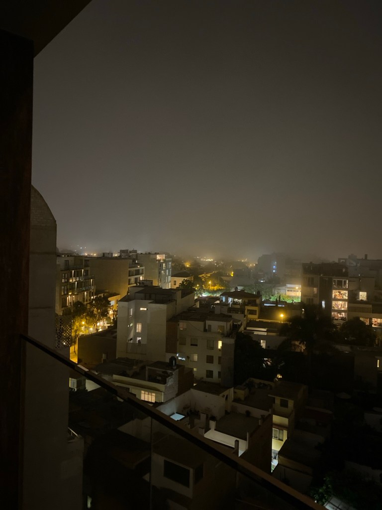 Der Nebel wabert jetzt dick und fett von unten durch die Straßen. Morgen soll es besser werden. Morgen müssen wir ausziehen aus unserer kleinen Wohnung im 10. Stock mit der schönen Aussicht auf den Morro, das Meer, Chorrillos, Villa Maria und die Berge mit den Favelas im Hintergrund. Nachts besonders malerisch. Die „Zeit“ hat uns einen Blutmond versprochen. Der ist auch nicht mehr zu trauen. Vorhin ging er noch dort oben, aber klein und mickrig.
