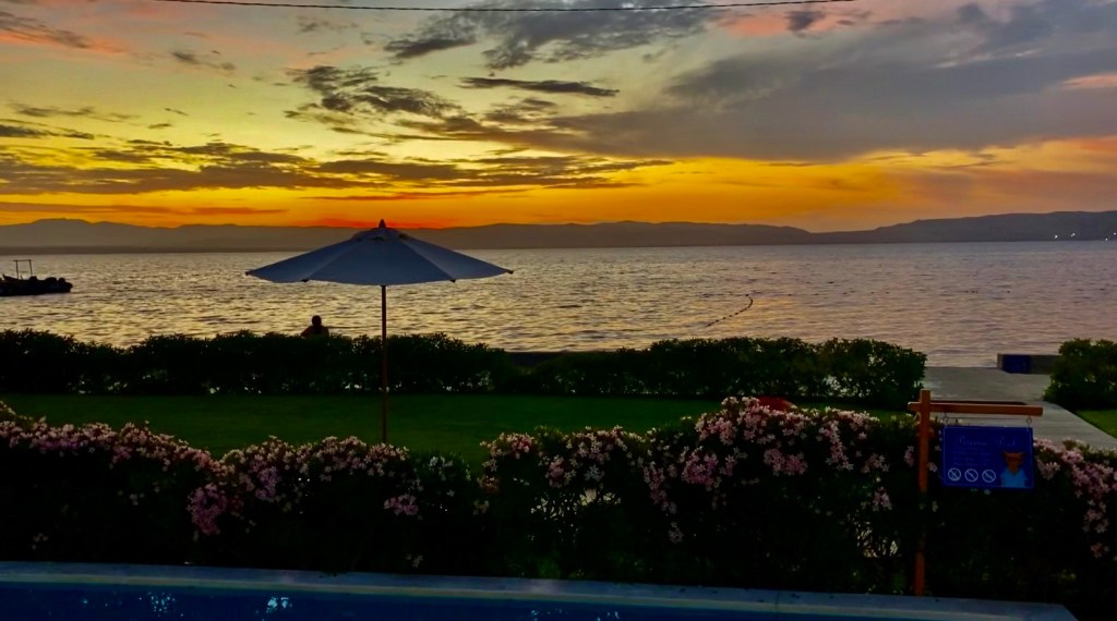 So haben wir jetzt das Fußballspiel gegen Italien im Hotel sehen können und freuen uns auf einen gemütlichen Hochzeitstag- Abend. Die Sonne ist bereit zu einem Traum-Untergang über dem Meer.